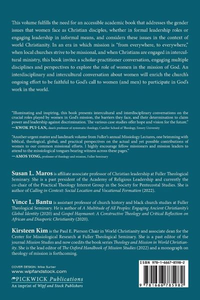 This volume fulfills the need for an accessible academic book that addresses the gender issues that women face as Christian disciples, whether in formal leadership roles or engaging leadership in informal means, and considers these issues in the context of world Christianity. In an era in which mission is ""from everywhere, to everywhere,"" when local churches strive to be missional, and when Christians are engaged in intercultural ministry, this book invites a scholar-practitioner conversation, engaging multiple disciplines and perspectives to explore the role of women in the mission of God. An interdisciplinary and intercultural conversation about women will enrich the church's ongoing effort to be faithful to God's call to women (and men) to participate in God's work in the world.