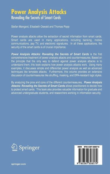 Power Analysis Attacks: Revealing the Secrets of Smart Cards is the first comprehensive treatment of power analysis attacks and countermeasures. Based on the principle that the only way to defend against power analysis attacks is to understand them, this book explains how power analysis attacks work. Using many examples, it discusses simple and differential power analysis as well as advanced techniques like template attacks. Furthermore, the authors provide an extensive discussion of countermeasures like shuffling, masking, and DPA-resistant logic styles. By analyzing the pros and cons of the different countermeasures, this volume allows practitioners to decide how to protect smart cards.