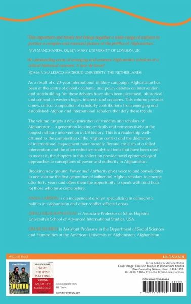 As a result of a 20-year international military campaign, Afghanistan has been at the centre of global academic and policy debates on intervention and statebuilding. Yet these debates have often been piecemeal, ahistorical and centred in western logics, interests and concerns. This volume provides a new, critical compilation of scholarly contributions from emerging and established Afghan and international scholars that defy these trends. The volume targets a new generation of students and scholars of Afghanistan- a generation looking critically and retrospectively at the longest military intervention in US history. This is a readership well-attuned to the complexities of the Afghan context and the dilemmas of international engagement more broadly. Beyond criticism of a failed intervention and the often reductive analytical tools that have been used to assess it, the chapters in this collection provide novel epistemological approaches to conceptions of power and authority in Afghanistan. Breaking new ground, Power and Authority gives voice to and consolidates in one volume the first generation of influential Afghan scholars to emerge after forty years and offers them the opportunity to speak with (and back to) those who have come before.