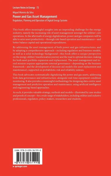 This book offers meaningful insights into an impending challenge for the energy industry, namely the increasing role of asset management amongst the utilities' core operations. In the aftermath of energy digitalization, power and gas companies will be able to seize asset productivity-through risk-based operation and maintenance-and better balance capital and operational expenditures. By addressing the asset management of both power and gas infrastructures, and by adopting a comprehensive approach-including regulation and business models, as well as a solid technology background-this book offers a unique perspective on the energy utilities' transformation journey and the road to optimal decision-making for both asset portfolio expansion and replacement. The asset management end-to-end mission requires appropriate internal governance-depending on the business framework-and the development of decision aid models (for asset replacement and maintenance), supported on probabilistic risk and reliability indexes. This book advocates systematically digitalizing the power and gas assets, addressing both data governance and infrastructure, alongside real-time equipment condition monitoring. It also provides a meaningful methodology for designing data-centric asset management and predictive operation and maintenance, using artificial intelligence and engineering-based approaches. As such, it provides valuable strategy, methods and models-illustrated by case studies and proofs of concept-for a wide range of stakeholders, including utilities and industry professionals, regulators, policy-makers, researchers and students.