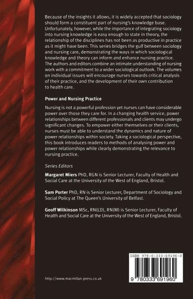 Nursing is not a powerful profession yet nurses can have considerable power over those they care for. In a changing health service, power relationships between different professionals and clients may undergo significant changes. To empower either themselves or their clients, nurses must be able to understand the dynamics and nature of power relationships within society. Taking a sociological perspective, this book introduces readers to methods of analysing power and power relationships while clearly demonstrating the relevance to nursing practice.