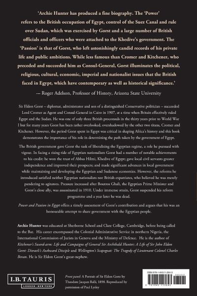 When Sir Eldon Gorst succeeded Lord Cromer as Agent and Consul-General in Cairo in 1907, Britain effectively ruled Egypt and the Sudan. The period Gorst spent in Egypt was critical in shaping Africa's history. The British government gave Gorst the task of liberalising the Egyptian regime, a role he pursued with vigour. However, the reforms he introduced satisfied neither Egyptian nationalists nor British expatriates, who believed he was merely pandering to agitators. Pressure increased after Boutros Ghali, the Egyptian Prime Minister and Gorst's close ally, was assassinated in 1910. Under immense strain, Gorst suspended his reform programme and a year later he was dead from cancer. Gorst's role in determining the path taken by the government of Egypt is often overlooked. "Power and Passion in Egypt" offers a timely assessment of his contribution and argues that his was an honourable attempt to share government with the Egyptian people.