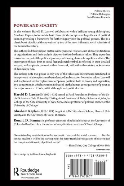 The authors note that power is only one of the values and instruments manifested in interpersonal relations; it cannotbe understood in abstraction from other values. Lasswell and Kaplan call for the replacement of "power politics," both in theory and in practice, by a conception in which attention is focused on the human consequences of power as the major concern of both political thought and political action. The basic discussions of core concepts in political science make Power and Society of continuing importance to scholars, government officials, and politicians.