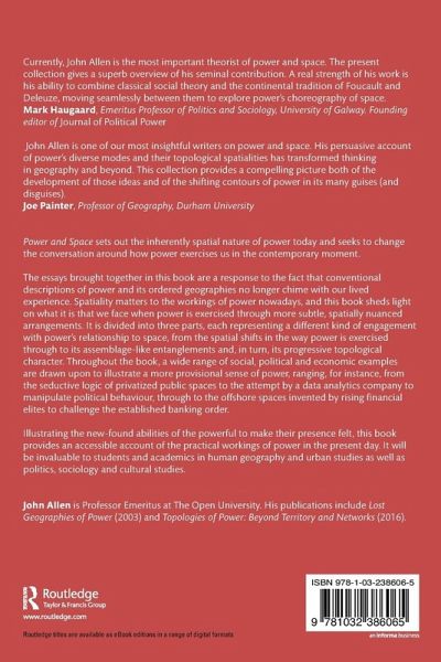 John Allen is one of our most insightful writers on power and space. His persuasive account of power's diverse modes and their topological spatialities has transformed thinking in geography and beyond. This collection provides a compelling picture both of the development of those ideas and of the shifting contours of power in its many guises (and disguises).