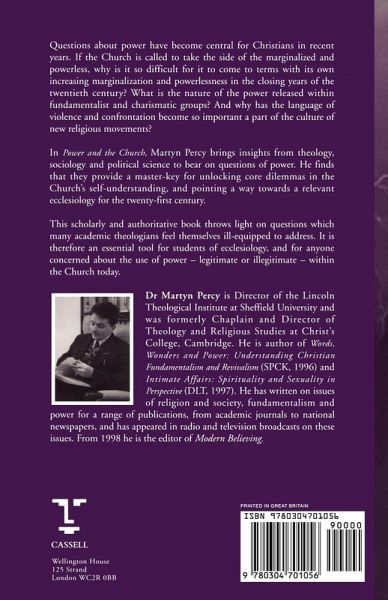 Employing insights from theology, sociology and political science, this text considers the question of power within the Church, which is thought to provide the key to unlocking core dilemmas in the Church's self-understanding, and to point towards a relevant ecclesiology for the 21st century. The book shows how different denominations handle power in different ways, exposes the misuse of power in fundamentalist and new religious movements, and argues that these movements highlight problems of power elsewhere within the Church.