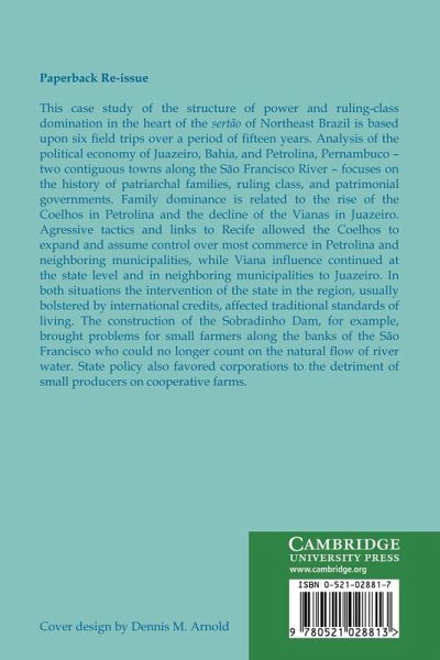 List of tables and figures; Preface; Part I. The Traditional Sertão: 1. The background; 2. The structure of power and the ruling class; 3. Juazeiro: cohesion and factionalism; 4. Petrolina: patriarchy and family dominance; 5. The ruling class and the polity; 6. The ruling class and the economy; 7. The ruling class in civic and social life; 8. Ideology; 9. Development and underdevelopment; 10. Participation, mobilization, and conflict; Part II. The Sertão Revisited: 11. Political challenge to traditional hegemony; 12. State intervention and the prospects for capitalist accumulation; Appendix; Bibliography; Index.