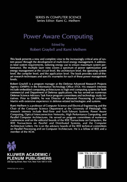With the advent of portable and autonomous computing systems, power con sumption has emerged as a focal point in many research projects, commercial systems and DoD platforms. One current research initiative, which drew much attention to this area, is the Power Aware Computing and Communications (PAC/C) program sponsored by DARPA. Many of the chapters in this book include results from work that have been supported by the PACIC program. The performance of computer systems has been tremendously improving while the size and weight of such systems has been constantly shrinking. The capacities of batteries relative to their sizes and weights has been also improv ing but at a rate which is much slower than the rate of improvement in computer performance and the rate of shrinking in computer sizes. The relation between the power consumption of a computer system and it performance and size is a complex one which is very much dependent on the specific system and the technology used to build that system. We do not need a complex argument, however, to be convinced that energy and power, which is the rate of energy consumption, are becoming critical components in computer systems in gen eral, and portable and autonomous systems, in particular. Most of the early research on power consumption in computer systems ad dressed the issue of minimizing power in a given platform, which usually translates into minimizing energy consumption, and thus, longer battery life.