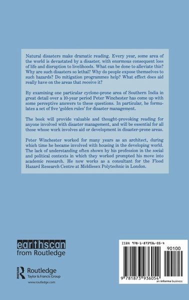 Natural disasters make dramatic reading. Every year, some area of the world is devastated by a disaster, with enormous consequent loss of life and disruption to livelihoods. What can be done to alleviate this? Why are such disasters so lethal? Why do people expose themselves to such hazards? Do mitigation programmes help? What effect does aid really have on the areas that receive it? By examining one particular cyclone-prone area of Southern India in great detail over a 10-year period Peter Winchester has come up with some perceptive answers to the questions. In particular, he formulates a set of five 'golden rules' for disaster management. The book will provide valuable and thought-provoking reading for anyone involved with disaster management, and will be essential for all those whose work involves aid or development in disaster-prone areas.