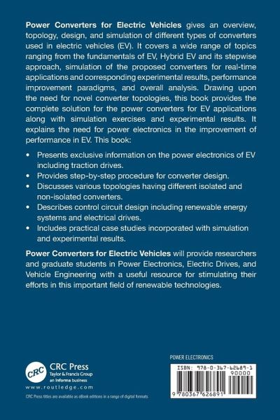 Power Converters for Electric Vehicles will provide researchers and graduate students in Power Electronics, Electric Drives, Vehicle Engineering a useful resource for stimulating their efforts in this important field of the search for renewable technologies.