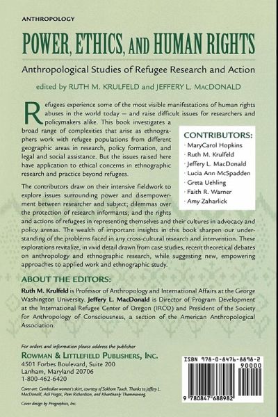 Chapter 1 Introduction Part 2 Part I: Human Rights and Research Chapter 3 Exploring New Methods for Collaboration in Ethnographic Research: An Attempt at Overcoming Exploitation and Violation of Informant Rights Chapter 4 Whose Lives, Whose Work? Struggling Along the Subject-Colleague Continuum Chapter 5 The Testimonio Method in Refugee Research: Bringing Together Advocacy and Feminism in an Ethnographic Encounter with Q'eqchi' amd K'iche' Women Part 6 Part II: Who has the Right to Present and Represent Chapter 7 "We are the Experts:" a Case of Iu-Mien (Yao) Refugees Asserting Their Rights as Scholars of Their Own Culture Chapter 8 Towards an Heterology of Power Part 9 Part III: Human Rights and Praxis Chapter 10 Applied Anthropology, Funding Agencies, and the Human and Cultural Rights of Ethnic Communities,