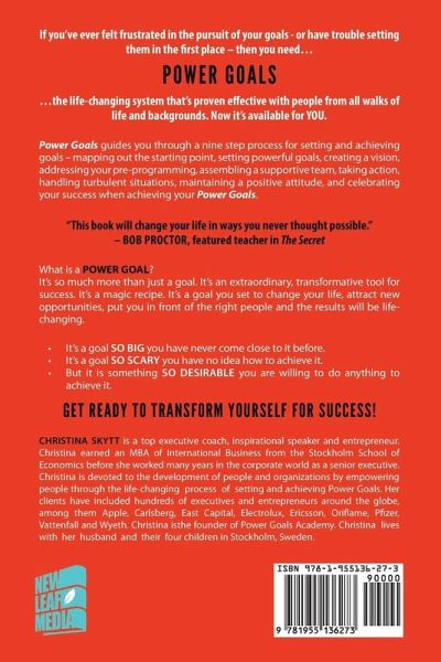 Power Goals guides you through a nine step process for setting and achieving goals - mapping out the starting point, setting powerful goals, creating a vision, addressing your pre-programming, assembling a supportive team, taking action, handling turbulent situations, maintaining a positive attitude, and celebrating your success when achieving your Power Goals.