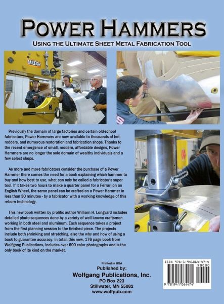 Previously the domain of large factories and certain old-school fabricators, power hammers are now available to hot rodders and collector-car restoration shops. As more and more fabricators consider the purchase of a power hammer there comes the need for a book explaining which hammer to buy and how best to use this fabricator's super tool. If it takes two hours to make a quarter panel for a Ferrari on an English Wheel, the same panel can be crafted on a power hammer in less than 30 minutes by a fabricator with a good working knowledge of this reborn technology. Author Longyard includes detailed step-by-step photos of well-trained and well-known craftsmen working with both steel and aluminum. He takes each project from the first planning session to the finished piece. The projects include both shrinking and stretching, plus the why and how of using a buck to guarantee accuracy.