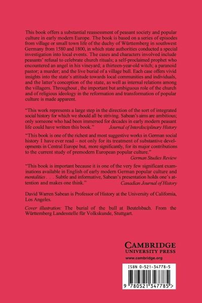 This book offers a substantial reassessment of peasant society and popular culture in early modern Europe. The book is based on a series of episodes from village or small town life of the duchy of Württemberg in southwest Germany from 1580 and 1800, in which state authorities conducted a special investigation into local events. The cases and characters involved include peasants' refusal to celebrate church rituals; a self-proclaimed prophet who encountered an angel in his vineyard; a thirteen-year-old witch; a paranoid pastor; a murder; and the live burial of a village bull. Each case offers vivid insights into the state's attitude towards local communities and individuals, and the latter's conception of the state, as well as internal relations among the villagers. Throuhgout, the important but ambiguous role of the church and of religious ideology in the reformation and transformation of popular culture is made apparent.