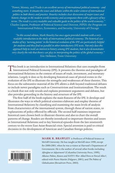 This book is an introduction to International Relations that uses examples from International Political Economy (IPE). It presents the theories and paradigms of International Relations in the context of the issues of trade, investment, and monetary relations. Largely it does so by developing historical cases of pivotal events in the evolution of the IPE to illustrate the strengths and weaknesses of these theories. This focus on the substantive material of the IPE allows a shift beyond traditional debates to include newer paradigms such as Constructivism and Institutionalism. The result is a book that not only reveals and explains prominent arguments and debates, but also provides grounding in the history and structure of the IPE. The first half of the book explains the main features of the IPE. It develops and illustrates the ways in which political scientists elaborate and employ theories of International Relations by classifying and examining the main levels of analysis from characteristics of the international system, through those of nation states, to explanations of policy effected by officials. The second half examines important historical cases chosen both to illustrate theories and also to chart the overall patterns of change. Readers are thereby introduced to important theories and issues in International Relations and to key historical episodes from the late nineteenth century to the recent East Asian financial crisis. Special attention is paid to critical decisions in the development of American and Canadian foreign policies