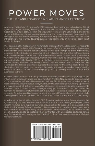 In Power Moves, John recounts his journey of ascension, from humble beginnings as the fifth of seven children in a working class family in Trenton, New Jersey, to becoming one of the state's most influential businessmen. With unflinching honesty, he tells the tale of the man behind the prestigious titles, awards, and revered accolades. Offering up lessons and experiences that define his inspirational journey, he recounts life-altering moments from his chaotic childhood, the challenges and joys of fatherhood, and, of course, the moment he accidentally stumbled upon his purpose. His candid account of navigating corporate America as a Black man, details the many difficulties he encountered while building several Black Chambers of Commerce within his home state, and those nearby.