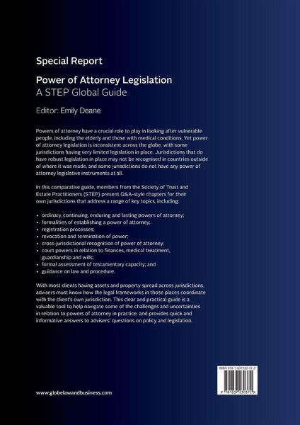 Powers of attorney have a crucial role to play in looking after vulnerable people, including the elderly and those with medical conditions. Yet power of attorney legislation is inconsistent across the globe, with some jurisdictions having very limited legislation in place. Jurisdictions that do have robust legislation in place may not be recognised in countries outside of where it was made, and some jurisdictions do not have any power of attorney legislative instruments at all. In this comparative guide, members from the Society of Trust and Estate Practitioners (STEP) present Q&A-style chapters for their own jurisdictions that address a range of key topics, including: • ordinary, continuing, enduring and lasting powers of attorney; • formalities of establishing a power of attorney; • registration processes; • revocation and termination of power; • cross-jurisdictional recognition of power of attorney; • court powers in relation to finances, medical treatment, guardianship and wills; • formal assessment of testamentary capacity; and • guidance on law and procedure. With most clients having assets and property spread across jurisdictions, advisers must know how the legal frameworks in those places coordinate with the client’s own jurisdiction. This clear and practical guide is a valuable tool to help navigate some of the challenges and uncertainties in relation to powers of attorney in practice, and provides quick and informative answers to advisers’ questions on policy and legislation.