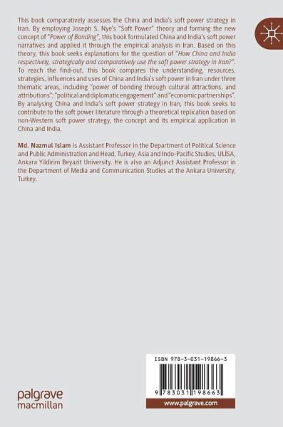This book comparatively assesses the China and India's soft power strategy in Iran. By employing Joseph S. Nye's "Soft Power" theory and forming the new concept of "Power of Bonding", this book formulated China and India's soft power narratives and applied it through the empirical analysis in Iran. Based on this theory, this book seeks explanations for the question of "How China and India respectively, strategically and comparatively use the soft power strategy in Iran?". To reach the find-out, this book compares the understanding, resources, strategies, influences and uses of China and India's soft power in Iran under three thematic areas, including "power of bonding through cultural attractions, and attributions"; "political and diplomatic engagement" and "economic partnerships". By analysing China and India's soft power strategy in Iran, this book seeks to contribute to the soft power literature through a theoretical replication based on non-Western soft power strategy,the concept and its empirical application in China and India.