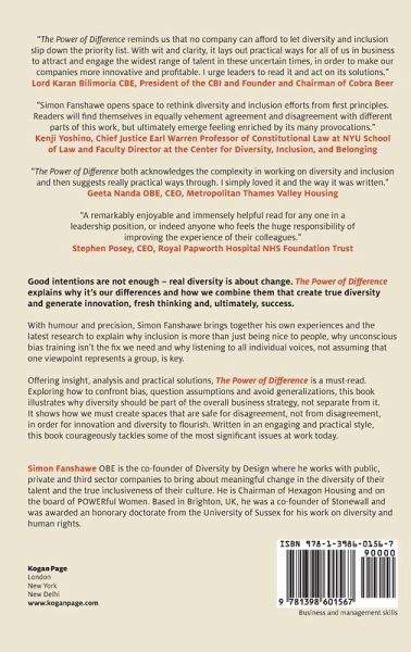 "Simon Fanshawe has written the most compelling book on diversity I've ever read...beautifully written and full of narrative power, The Power of Difference weaves together the author's personal experiences, insights from research, and remarkable stories of others' journeys to show both how to build genuine inclusion and why it matters so very much in our multicultural world and to the success of organizations." Amy C Edmondson, Professor, Harvard Business School and author of The Fearless Organization