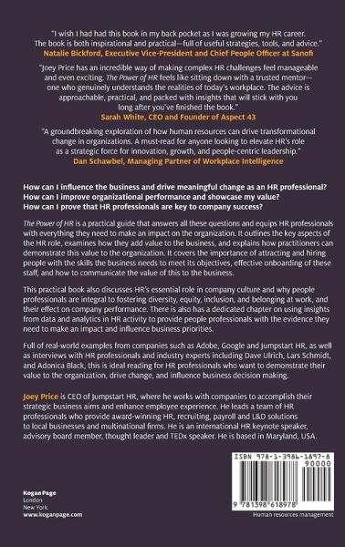 How can I influence the business and drive meaningful change as an HR professional? How can I improve organizational performance and showcase my value? How can I prove that HR professionals are key to company success? The Power of HR is a practical guide that answers all these questions and equips HR professionals with everything they need to make an impact on the organization. It outlines the key aspects of the HR role, examines how they add value to the business and explains how practitioners can demonstrate this value to the organization. It includes coverage of the importance of attracting and hiring the people with the skills the business needs to meet its objectives, effective onboarding of these staff as well as guidance on how to communicate the value of this to the business. This practical book also covers HR's essential role in company culture and why people professionals are integral to fostering diversity, equity, inclusion and belonging at work and the corresponding effect this has on company performance. This book also has a dedicated chapter on using insights from data and analytics in HR activity to provide people professionals with the evidence they need to make an impact and influence business priorities. Full of real-world examples from companies such as Adobe, Google, LexisNexis, Jumpstart HR and NPR as well as interviews from HR professionals and industry experts including Dave Ulrich, Lars Schmidt and Adonica Black, this is ideal reading for all HR professionals wanting to demonstrate their value to the organization, drive change and influence business decision making.