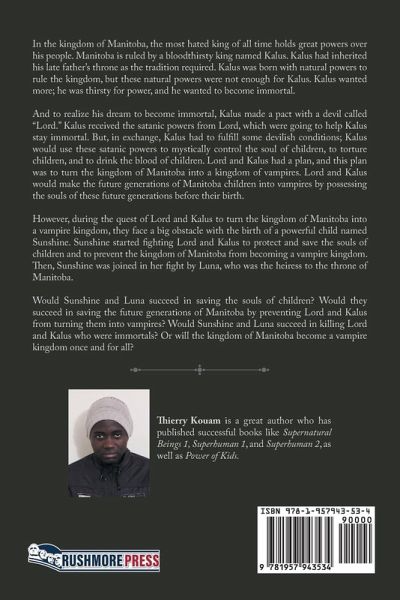 In the kingdom of Manitoba, the most hated king of all time holds great powers over his people. Manitoba is ruled by a bloodthirsty king named Kalus. Kalus had inherited his late father's throne as the tradition required. Kalus was born with natural powers to rule the kingdom, but these natural powers were not enough for Kalus. Kalus wanted more; he was thirsty for power, and he wanted to become immortal. And to realize his dream to become immortal, Kalus made a pact with a devil called "Lord." Kalus received the satanic powers from Lord, which were going to help Kalus stay immortal. But, in exchange, Kalus had to fulfill some devilish conditions; Kalus would use these satanic powers to mystically control the soul of children, to torture children, and to drink the blood of children. Lord and Kalus had a plan, and this plan was to turn the kingdom of Manitoba into a kingdom of vampires. Lord and Kalus would make the future generations of Manitoba children into vampires by possessing the souls of these future generations before their birth. However, during the quest of Lord and Kalus to turn the kingdom of Manitoba into a vampire kingdom, they face a big obstacle with the birth of a powerful child named Sunshine. Sunshine started fighting Lord and Kalus to protect and save the souls of children and to prevent the kingdom of Manitoba from becoming a vampire kingdom. Then, Sunshine was joined in her fight by Luna, who was the heiress to the throne of Manitoba. Would Sunshine and Luna succeed in saving the souls of children? Would they succeed in saving the future generations of Manitoba by preventing Lord and Kalus from turning them into vampires? Would Sunshine and Luna succeed in killing Lord and Kalus who were immortals? Or will the kingdom of Manitoba become a vampire kingdom once and for all?