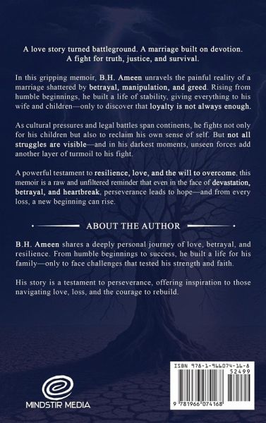 A love story turned battleground. A marriage built on devotion. A fight for truth, justice, and survival. In this gripping memoir, B.H. Ameen unravels the painful reality of a marriage shattered by betrayal, manipulation, and greed. Rising from humble beginnings, he built a life of stability, giving everything to his wife and children-only to discover that loyalty is not always enough. As cultural pressures and legal battles span continents, he fights not only for his children but also to reclaim his own sense of self. But not all struggles are visible-and in his darkest moments, unseen forces add another layer of turmoil to his fight. A powerful testament to resilience, love, and the will to overcome, this memoir is a raw and unfiltered reminder that even in the face of devastation, betrayal, and heartbreak, perseverance leads to hope-and from every loss, a new beginning can rise.