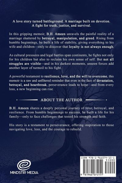 A love story turned battleground. A marriage built on devotion. A fight for truth, justice, and survival. In this gripping memoir, B.H. Ameen unravels the painful reality of a marriage shattered by betrayal, manipulation, and greed. Rising from humble beginnings, he built a life of stability, giving everything to his wife and children-only to discover that loyalty is not always enough. As cultural pressures and legal battles span continents, he fights not only for his children but also to reclaim his own sense of self. But not all struggles are visible-and in his darkest moments, unseen forces add another layer of turmoil to his fight. A powerful testament to resilience, love, and the will to overcome, this memoir is a raw and unfiltered reminder that even in the face of devastation, betrayal, and heartbreak, perseverance leads to hope-and from every loss, a new beginning can rise.
