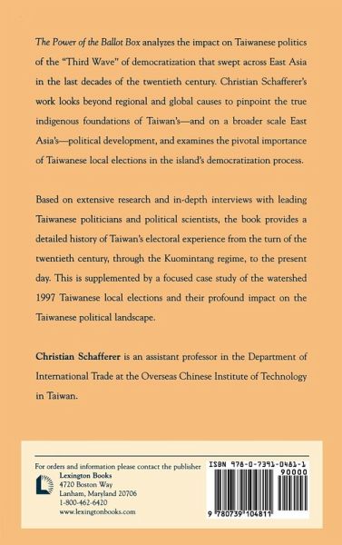 The Power of the Ballot Box analyzes the impact on Taiwanese politics of the "Third Wave" of democratization that swept across East Asia in the last decades of the twentieth century.