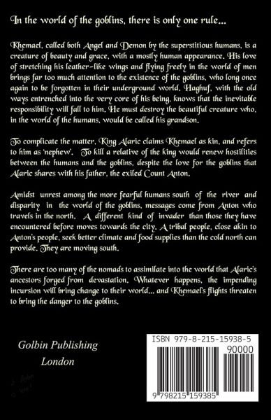 Khemael, called both Angel and Demon by the superstitious humans, is a creature of beauty and grace, with a mostly human appearance. His love of stretching his leather-like wings and flying freely in the world of men brings far too much attention to the existence of the goblins, who long once again to be forgotten in their underground world. Haghuf, with the old ways entrenched into the very core of his being, knows that the inevitable responsibility will fall to him. He must destroy the beautiful creature who, in the world of the humans, would be called his grandson. To complicate the matter, King Alaric claims Khemael as kin, and refers to him as 'nephew'. To kill a relative of the king would renew hostilities between the humans and the goblins, despite the love for the goblins that Alaric shares with his father, the exiled Count Anton. Amidst unrest among the more fearful humans south of the river and disparity in the world of the goblins, messages come from Anton who travels in the north. A different kind of invader than those they have encountered before moves towards the city. A tribal people, close akin to Anton's people, seek better climate and food supplies than the cold north can provide. They are moving south. There are too many of the nomads to assimilate into the world that Alaric's ancestors forged from devastation. Whatever happens, the impending incursion will bring change to their world... and Khemael's flights threaten to bring the danger to the goblins.