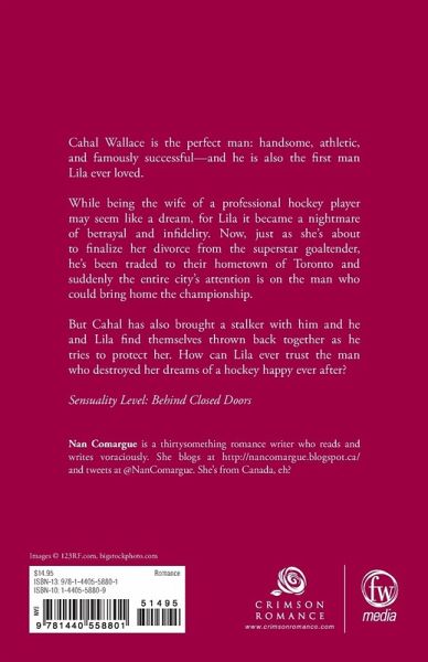 Cahal Wallace is the perfect man: handsome, athletic, and famously successful - and he is also the first man Lila ever loved. While being the wife of a professional hockey player may seem like a dream, for Lila it became a nightmare of betrayal and infidelity. Now, just as she's about to finalize her divorce from the superstar goaltender, he's been traded to their hometown of Toronto and suddenly the entire city's attention is on the man who could bring home the championship. But Cahal's also brought a stalker with him and he and Lila find themselves thrown back together as he tries to protect her. How can Lila ever trust the man who destroyed her dreams of a hockey happy ever after? Sensuality Level: Behind Closed Doors