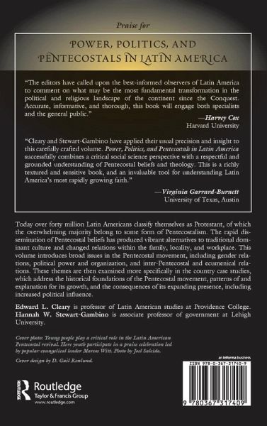 1 Introduction: Pentecostals Prominence and Politics 2 Pentecostals Politics and Public Space in Latin America 3 Pentecostalism and Women in Brazil 4 Private Power or Public Power: Pentecostalism Base Communities and Gender 5 Interchurch Relations: Exclusion Ecumenism and the Poor 6 Chilean Pentecostalism: Coming of Age 7 Pentecostalism Conversions and Politics in Brazil 8 Guatemalan Pentecostals: Something of Their Own 9 Bricando el Charco/Jumping the Puddle: A Case Study of Pentecostalism's Journey from Puerto Rico to New York to Allentown Pennsylvania 10 The Sound of Tambourines: The Politics of Pentecostal Growth in El Salvador 11 Pentecostals and Evangelicals in Venezuela: Consolidating Gains Moving in New Directions 12 Latin American Pentecostals: Old Stereotypes and New Challenges