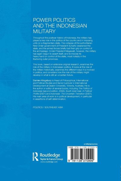 Throughout the postwar history of Indonesia, the military have played a key role in the politics of the country and in imposing unity on a fragmentary state. The collapse of the authoritarian New Order government of President Suharto weakened the state and the armed forces briefly lost their grip on control of the archipelago. However, under President Megawati, the military has again begun to assert itself, and re-impose its heavy hand on control of the state, most notably in the fracturing outer provinces. Based on extensive original research, this book examines the role of the military in Indonesian politics. It looks at the role of the military historically, examines the different ways it is involved in politics, and considers how the role of the military might develop in what is still an uncertain future.