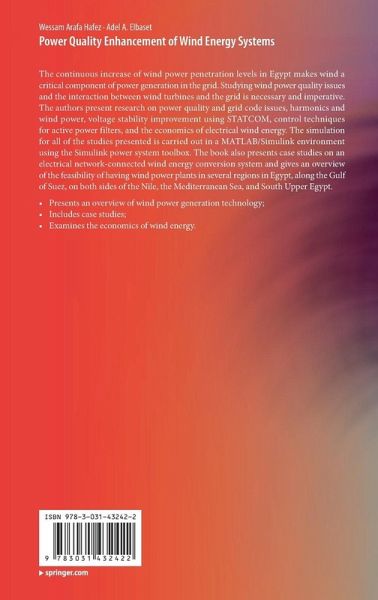 The continuous increase of wind power penetration levels in Egypt makes wind a critical component of power generation in the grid. Studying wind power quality issues and the interaction between wind turbines and the grid is necessary and imperative. The authors present research on power quality and grid code issues, harmonics and wind power, voltage stability improvement using STATCOM, control techniques for active power filters, and the economics of electrical wind energy. The simulation for all of the studies presented is carried out in a MATLAB/Simulink environment using the Simulink power system toolbox. The book also presents case studies on an electrical network-connected wind energy conversion system and gives an overview of the feasibility of having wind power plants in several regions in Egypt, along the Gulf of Suez, on both sides of the Nile, the Mediterranean Sea, and South Upper Egypt.