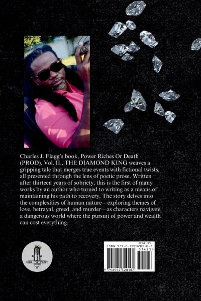 Charles J. Flagg's book, Power Riches Or Death (PROD), Vol. II., THE DIAMOND KING weaves a gripping tale that merges true events with fictional twists, all presented through the lens of poetic prose. Written after thirteen years of sobriety, this is the first of many works by an author who turned to writing as a means of maintaining his path to recovery. The story delves into the complexities of human nature-exploring themes of love, betrayal, greed, and murder-as characters navigate a dangerous world where the pursuit of power and wealth can cost everything.