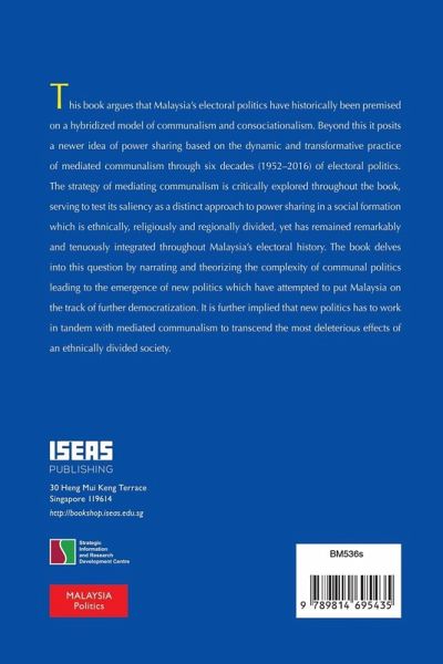 This book argues that Malaysia's electoral politics have historically been premised on a hybridized model of communalism and consociationalism. Beyond this it posits a newer idea of power sharing based on the dynamic and transformative practice of mediated communalism through six decades (1952-2016) of electoral politics. The strategy of mediating communalism is critically explored throughout the book, serving to test its saliency as a distinct approach to power sharing in a social formation which is ethnically, religiously and regionally divided, yet has remained remarkably and tenuously integrated throughout Malaysia's electoral history. The book delves into this question by narrating and theorizing the complexity of communal politics leading to the emergence of new politics which have attempted to put Malaysia on the track of further democratization. It is further implied that new politics has to work in tandem with mediated communalism to transcend the most deleterious effects of an ethnically divided society.