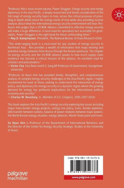 This book explores East Asia's and the Asia Pacific's energy security exploring key issues including major trans-border energy projects, major country's energy mix policy, trans- border pipelines, LNG transfer between nations, balance of power relations between major powers, the North Korean energy situation, energy alliances, Belt and Road Initiative, Indo-Pacific Strategy, World Choke point and more. In particular, this book provides the detailed analysis of the current problems of energy security and diplomacy among various countries as well as policy implications. It will clearly serve as a manual to enhance energy security in the region and boost energy transaction as well as the pioneering step to conceptualize the notion of energy security among political circles, in the diplomatic community and energy industry as well as international relations academics.