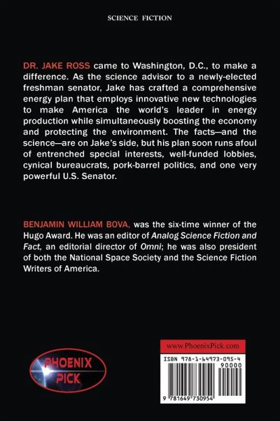 DR. JAKE ROSS came to Washington, D.C., to make a difference. As the science advisor to a newly-elected freshman senator, Jake has crafted a comprehensive energy plan that employs innovative new technologies to make America the world's leader in energy production while simultaneously boosting the economy and protecting the environment. The facts-and the science-are on Jake's side, but his plan soon runs afoul of entrenched special interests, well-funded lobbies, cynical bureaucrats, pork-barrel politics, and one very powerful U.S. Senator. BENJAMIN WILLIAM BOVA, was the six-time winner of the Hugo Award. He was an editor of Analog Science Fiction and Fact, an editorial director of Omni; he was also president of both the National Space Society and the Science Fiction Writers of America.