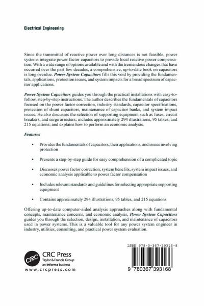 Since transmitting reactive power over long distances is not feasible, power factor correction capacitors are used to provide local reactive power compensation. This text provides a step-by-step approach to the fundamentals, capacitor applications, protection issues, and system impact based on practical installations involved in designing power system capacitors. It describes the fundamentals of capacitors focused on the power factor correction, industry standards, capacitor specifications, protection of shunt capacitors, maintenance of capacitor banks, and system impact issues. This is a valuable tool for any power system engineer in industry, utilities, consulting, and practical power system evaluation.