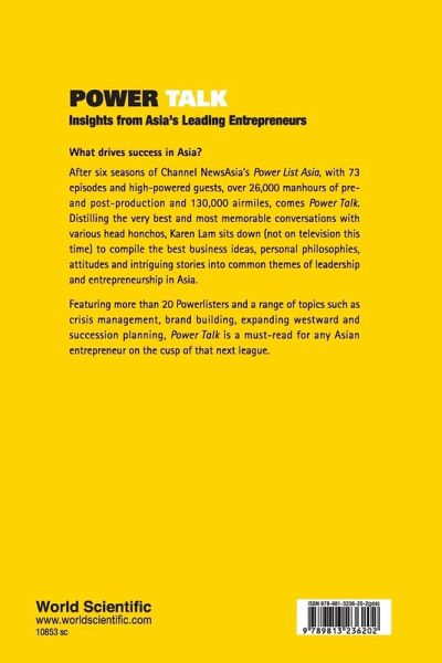 What drives success in Asia? How did the pioneers do what they did, how are they planning their succession? What are their views on life and family? After six seasons of Channel News Asia's Power List Asia, with 73 episodes high-powered guests, over 26,000 manhours of pre- and post-production and 130,000 airmiles, comes Power Talk. Distilling the very best and most memorable conversations with various head honchos, Karen Lam sits down (not on television this time) to compile the best business ideas, personal philosophies, attitudes and intriguing stories into common themes of leadership and entrepreneurship in Asia. Featuring more than 20 Powerlisters and a range of topics such as crisis management, brand building, expanding westward and succession planning, Power Talk is a must-read for any Asian entrepreneur on the cusp of that next league.