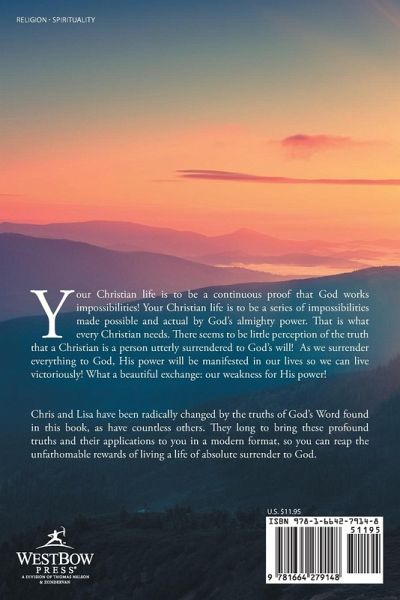 Your Christian life is to be a continuous proof that God works impossibilities! Your Christian life is to be a series of impossibilities made possible and actual by God's almighty power. That is what every Christian needs. There seems to be little perception of the truth that a Christian is a person utterly surrendered to God's will! As we surrender everything to God, His power will be manifested in our lives so we can live victoriously! What a beautiful exchange: our weakness for His power!