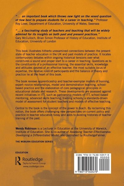 This book illustrates hitherto unexamined connections between the present state of teacher education in the UK and past models of practice. It locates contemporary debates within ongoing historical tensions over what constitutes a sound and proper start to a career in teaching. Questions as to the constituents of a professional training, the essential skills, knowledge and attitudes desired of an effective teacher, the most suitable locus of expertise, the relative roles of participants, and the balance of theory and practice lie at the heart of this book. The book reviews apprenticeship and teach-exemplar models of training, expert-novice relationships, model and demonstration teaching, school-based practice and the elaboration of core pedagogical principles in educational debate and research. These developments are assessed against recent initiatives in ITT, such as partnership models of ITT, school-based mentoring, advanced skills teaching, training schools, a standards-driven model of assessment for student teachers and models of effective teaching. Central to the book is the concept of the power to teach. By reclaiming this notion, the book offers challenging new perspectives on current policy and practice in teacher education today and adds to existing histories of teacher training of the past.
