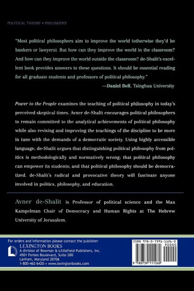 Power to the People examines the teaching of political philosophy in what is taken to be skeptical times. Author Avner de-Shalit encourages political philosophers to remain committed to the analytical achievements of political philosophy while also revising and improving the teachings of the discipline to be more in tune with the demands of democratic society.