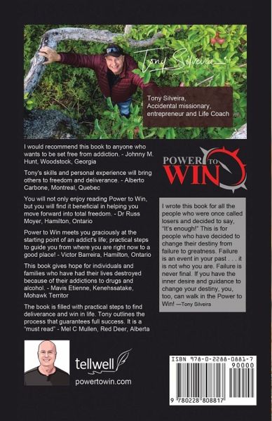 Power to Win. Overcome any addiction. I wrote this book for all the people who were once called losers and decided to say, "It's enough!" This is for people who have decided to change their destiny from failure to greatness. Failure is an event in your past . . . it is not who you are. Failure is never final. If you have the inner desire and guidance to change your destiny, you, too, can walk in the Power to Win! —Tony Silveira I would recommend this book to anyone who wants to be set free from addiction. - Johnny M. Hunt, Woodstock, Georgia Tony's skills and personal experience will bring others to freedom and deliverance. - Alberto Carbone, Montreal, Quebec You will not only enjoy reading Power to Win, but you will find it beneficial in helping you move forward into total freedom. - Dr Russ Moyer, Hamilton, Ontario Power to Win meets you graciously at the starting point of an addict's life; practical steps to guide you from where you are right now to a good place! - Victor Barreira, Hamilton, Ontario This book gives hope for individuals and families who have had their lives destroyed because of their addictions to drugs and alcohol. - Mavis Etienne, Kenehssatake, Mohawk Territory