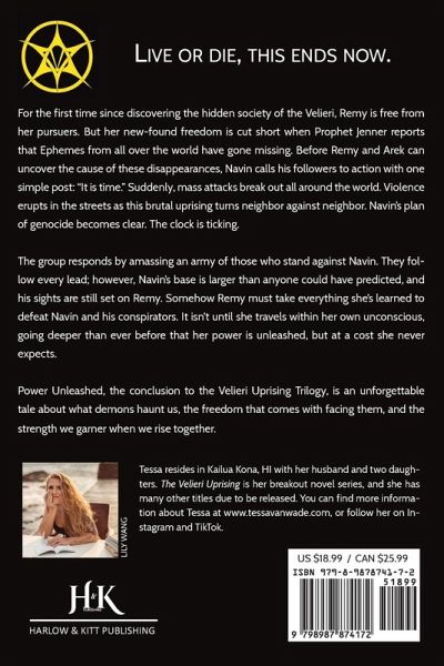 For the first time since discovering the hidden society of the Velieri, Remy is free from her pursuers. But her new-found freedom is cut short when Prophet Jenner reports that Ephemes from all over the world have gone missing. Before Remy and Arek can uncover the cause of these disappearances, Navin calls his followers to action with one simple post: "It is time." Suddenly, mass attacks break out all around the world. Violence erupts in the streets as this brutal uprising turns neighbor against neighbor. Navin's plan of genocide becomes clear. The clock is ticking. The group responds by amassing an army of those who stand against Navin. They follow every lead; however, Navin's base is larger than anyone could have predicted, and his sights are still set on Remy. Somehow Remy must take everything she's learned to defeat Navin and his conspirators. It isn't until she travels within her own unconscious, going deeper than ever before that her power is unleashed, but at a cost she never expects. Power Unleashed, the conclusion to the Velieri Uprising Trilogy, is an unforgettable tale about what demons haunt us, the freedom that comes with facing them, and the strength we garner when we rise together.