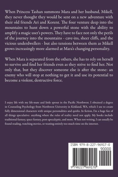 When Princess Tashan summons Mara and her husband, Mikell, they never thought they would be sent on a new adventure with their old friends Ari and Korent. The four venture deep into the mountains to hunt down a powerful stone with the ability to amplify a magic user's powers. They have to face not only the perils of the journey into the mountains - cave-ins, sheer cliffs, and the vicious underdwellers - but also tensions between them as Mikell grows increasingly more alarmed at Mara's changing personality. When Mara is separated from the others, she has to rely on herself to survive and find her friends even as they strive to find her. Not only that, but they discover someone else is after the stone: an enemy who will stop at nothing to get it and use its potential to become a violent, destructive force.