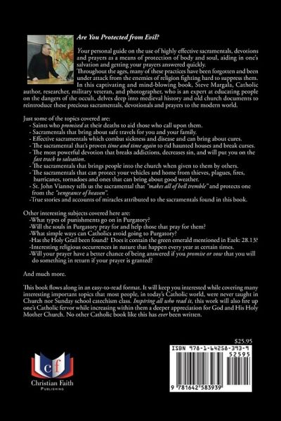 Your personal guide on the use of highly effective sacramentals, devotions and prayers as a means of protection of body and soul, aiding in one's salvation and getting your prayers answered quickly. Throughout the ages, many of these practices have been forgotten and been under attack from the enemies of religion fighting hard to suppress them. In this captivating and mind-blowing book, Steve Margala, Catholic author, researcher, military veteran, and photographer, who is an expert at educating people on the dangers of the occult, delves deep into medieval history and old church documents to reintroduce these precious sacramentals, devotionals and prayers to the modern world. Just some of the topics covered are: - Saints who promised at their deaths to aid those who call upon them. - Sacramentals that bring about safe travels for you and your family. - Effective sacramentals which combat sickness and disease and can bring about cures. - The sacramental that's proven time and time again to rid haunted houses and break curses. - The most powerful devotion that breaks addictions, decreases sin, and will put you on the fast track to salvation. - The sacramentals that brings people into the church when given to them by others. - The sacramentals that can protect your vehicles and home from thieves, plagues, fires, hurricanes, tornadoes and ones that can bring about good weather. - St. John Vianney tells us the sacramental that "makes all of hell tremble" and protects one from the "vengeance of heaven". -True stories and accounts of miracles attributed to the sacramentals found in this book. Other interesting subjects covered here are: -What types of punishments go on in Purgatory? -Will the souls in Purgatory that we pray for act on our behalf when we are judged? -What simple ways can we avoid going to Purgatory ourselves? -Has the Holy Grail been found? Does it contain the green emerald mentioned in Ezek: 28.13? -Interesting religious occurrences in nature that happen every year at certain times. -Will your prayer have a better chance of being answered if you promise or vow that you will do something in return if your prayer is granted? And much more. This book flows along in an easy-to-read format. It will keep you interested while covering many interesting important topics that most people, in today's Catholic world, were never taught in Church nor Sunday school catechism class. This work will inspire all who read it, encouraging and firing up one's religious fervor and increasing within them a deeper appreciation for God and His Holy Mother Church. No other Catholic book like this has ever been written.