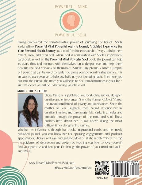 The power of the mind and its impact on how we interact with the world us is some thing that cannot be underestimated. There is no better time in the world than NOW to reprogram your mindset, and become the best version of yourself! Sheila Vaske explores the impact a positive mindset can have on a persons life and development through her own experiences of growth and mindful evolution through her book, Powerful Mind Powerful Soul. However, She truly believes the magic lies in journaling. Whether or not you've read the book.... Putting "Pen to Paper" deeply allows you to become connected and "ONE" with your thoughts, feelings, and emotions. The moment we become quiet and tap into our higher selves through journaling, we expand the mind and soul. This emits an energy into the universe to create and manifest what we desire while releasing anything that no longer serves us. Whether you are just beginning to journal or an avid journalist, Sheila created the Powerful Mind Powerful Soul Journal for all, and any age. Each day is prompted with questions to think about, section for expressing gratitude, as well as "reflection" pages after 10 sessions. Consistency is key. Each day is a NEW DAY. It's time to create the life you dream of and release wait no longer serves you.