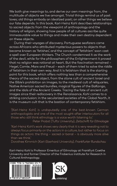 We both give meanings to, and derive our own meanings from, the multitude of objects we live amongst. Trivial things remind us of past loves; old things embody an idealized past; on other things we believe our fate depends. In this book, Karl-Heinz Kohl describes relationships to sacred objects from the viewpoint of anthropology and the history of religion, showing how people of all cultures ascribe quite immeasurable value to things and make their own destiny dependent on these objects. During their voyages of discovery, Portuguese seafarers came across Africans who attributed mysterious powers to objects that became known as 'fetishes', and the concept of 'fetishism' soon cast a spell over European thinkers. The Church condemned it as the work of the devil, while for the philosophers of the Enlightenment it proved that no religion was rational at heart. But the fascination remained - Hegel, Comte, Marx and Freud - each of them tried to solve the riddle of fetishism in their own way. And it is fetishism that is the starting point for this book, which offers nothing less than a comprehensive theory of the sacred object, from the stone cult of ancient Israel and the Bible's prohibition on images, to the medieval cult of reliquaries, Native American sacred bundles, magical figures of the BaKongo, and the idols of the Ancient Greeks. Tracing the fate of ancient cult images since their rediscovery in the Renaissance, Kohl comes to a striking conclusion: in the secularized societies of the Global North, it is the museum cult that is the bastion of contemporary fetishism.