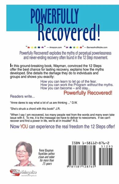 In this ground breaking book, Anne Wayman, clean and sober for almost 25 years and with multiple works published by Hazelden, explores two myths that grown up in the 12 Step movement: never-ending recovery, and perpetual powerlessness. Convinced that the 12 Steps offer the best chance for lasting recovery, she challenges the movement to acknowledge the fear behind the myths, and let them go so that the Program can reach its full potential. Working from original source material, she explains the nature and development of the myths. She documents the damage they do to individuals and the movement as a whole, including its relative failure in areas of poverty where it is most needed. With true compassion and understanding she shows exactly what 12 Steppers need to do to let go of the myths, and become Powerfully Recovered, as the original Program intended.