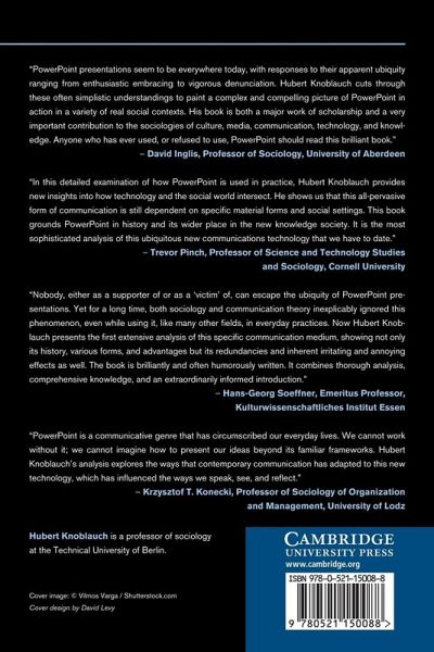 PowerPoint has become an integral part of academic and professional life across the globe. In this book, Hubert Knoblauch offers the first complete analysis of the PowerPoint presentation as a form of communication. Knoblauch charts the diffusion of PowerPoint and explores its significance as a ubiquitous and influential element of contemporary communication culture. His analysis considers the social and intellectual implications of the genre, focusing on the dynamic relationships between the aural, visual and physical dimensions of PowerPoint presentations, as well as the diverse institutional contexts in which these presentations take place. Ultimately, Knoblauch argues that the parameters of the PowerPoint genre frames the ways in which information is presented, validated and absorbed, with ambiguous consequences for the acquisition and transmission of knowledge. This original and timely book is relevant to scholars of communications, sociology and education.