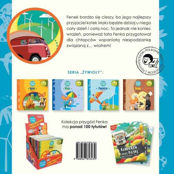 "Przygody Fenka: Powietrze" to edukacyjna i fascynuj¿ca ksi¿¿ka dla przedszkolaków i dzieci w wieku wczesnoszkolnym. Fenek jest bardzo szcz¿¿liwy, bo jego najlepszy przyjaciel kotek Maks b¿dzie u niego cäy dzie¿ i cä¿ noc. To jednak nie koniec wräe¿, poniewä tata Fenka przygotowä dla ch¿opców wspaniä¿ niespodziank¿ zwi¿zan¿ z wiatrem! Dzi¿ki tej ksi¿¿ce dziecko:dowie si¿, do czego wykorzystywana jest si¿a wiatru; dowie si¿, co to jest elektrownia wiatrowa; pozna zasady dziäania elektrowni wiatrowej; przekona si¿, ¿e wiatr möe przyczyniä si¿ do ¿wietnej zabawy, ale möe by¿ równie¿ bardzo niebezpieczny. Ksi¿¿ka zawiera pytania angäuj¿ce m¿odych czytelników, zach¿caj¿ce do refleksji nad tre¿ci¿ i ilustracjami. Ekspertk¿ w tej tematyce jest Barbara Jakubowska - synoptyk meteorolog z Instytutu Meteorologii i Gospodarki Wodnej Pästwowego Instytutu Badawczego, która na ostatniej stronie ksi¿¿ki przybli¿a temat zwi¿zany z powietrzem jako ¿ród¿em ¿ycia i zagröe¿. Dodatkowo, ksi¿¿ka zawiera propozycje wspólnych aktywnöci, które pomagaj¿ dzieciom lepiej zrozumie¿ rol¿ wiatru w przyrodzie i jego zastosowania. Na stronie internetowej dost¿pne s¿ darmowe materiäy edukacyjne, takie jak scenariusze zaj¿¿, kolorowanki i karty pracy.